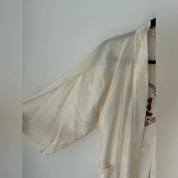 Vintage Silk Asian Kimono 1970’s Embroidered White and Gold Silk Kimono 70’s