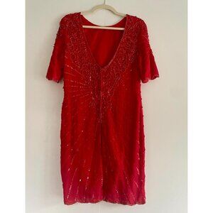 Vintage 1980s crimson red beaded mini dress. Absolutely gorgeous and in perfect condition except for one minor design line with sequin loss (see photo.)