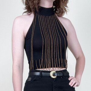 Vintage Silk Beaded Kit Crop Top Halter Blouse Shirt Sexy Going Out Club 90s Y2K