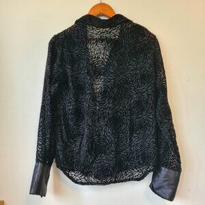 Vintage Silk Blend Sheer Black Velvet Burnout Button up Rose Print Blouse