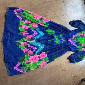 bodice and skirt blue silk. From waist 40" to ankle (hem).