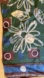 Green scarf with floral design. Accents of blue, brown, and cream.