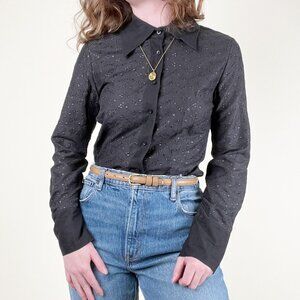 Vintage Silk & Linen Eyelet Lace Button Up Shirt Blouse Whimsigoth Witch 90s Y2K