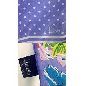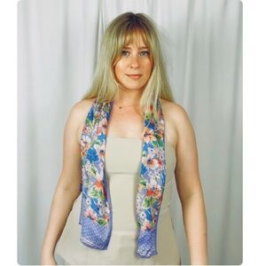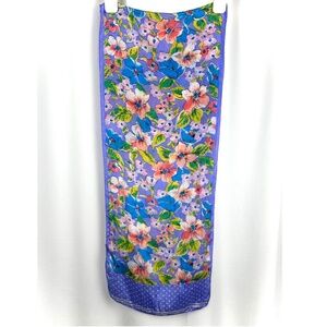 Vintage Silk Pink Blue + Purple Honey Floral Dotted Long Rectangle Neck Scarf