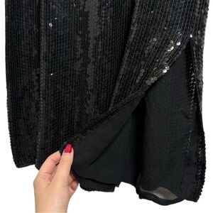 Vintage Silk Sequin Skirt Size Medium Large Black 80s 90s Glam