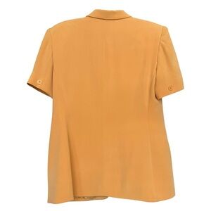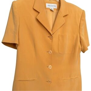 Vintage 90s 100% silk short sleeve blazer in a golden marigold yellow by Jones New York. Very good pre-owned condition — two small marks on the back corner (see photo 6).