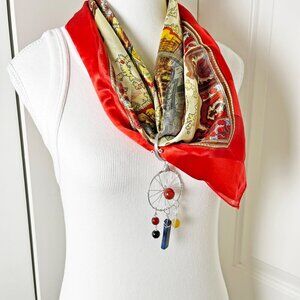 Vintage Silky Rome Scarf with Convertible Gemstone Dreamcatcher Pendant Necklace