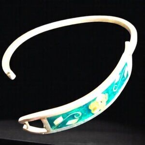 Vintage Silver .925 Hinged Bracelet Taxco Mexico Abalone Flower Green Malachite