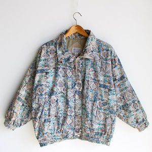 Vintage Silver Abstract Hawaiian Pattern Jacket