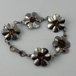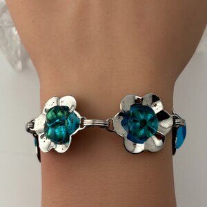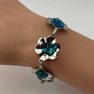 Vintage Silver & Aquamarine Toned Flower Bracelet