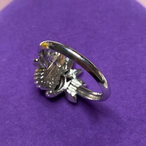This gorgeous Avon ring is a timeless piece of jewelry that will add beauty and elegance to any occasion. Featuring a silver tone band, intricate rhinestone swirls, and a classic faux pearl centerpiece, this vintage ring is perfect for anyone who loves beauty and style.