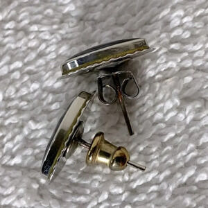 Vintage Silver Black Tone Small Diamond Shaped Pierced Earrings