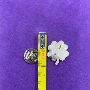 Elegant silver four-leaf clover brooch, perfect for adding a touch of luck to any outfit.