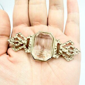 Vintage Silver Gold Tone Rhinestones Clear Faceted Glass Pin Brooches Lot