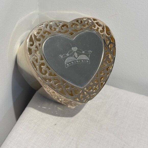 Beautiful silver-tone jewelry box. Has a vintage look is shaped like a heart and princess details. Great for rings, earrings, or small items. Makes a lovely gift or décor piece.