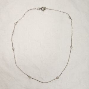 Delicate Sterling Silver Chain Art Deco Choker Necklace with 6 tiny White Pearls.