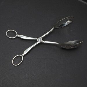 Vintage Silver Plate Salad Tongs Dinner Party Italy EP Zinc Retro Serve Ware MCM
