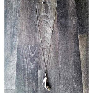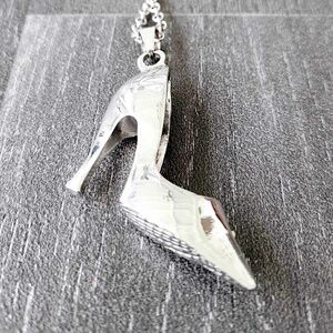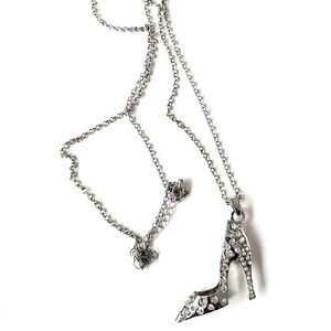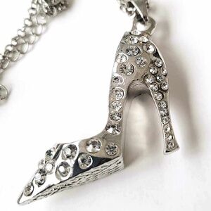 πVintage Silver Rhinestone Covered High Heel Shoe Heavy Pendant Chain Necklace