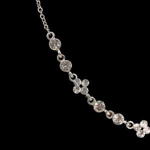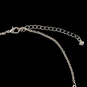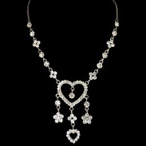 This necklace is a real statement piece! It has a beautiful rhinestone encrusted heart with three flower and heart charms dangling from the bottom of the heart, and one dangling from the middle of the heart. The chain is also partially encrusted with rhinestones. In excellent vintage condition.