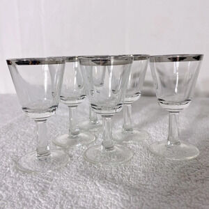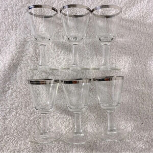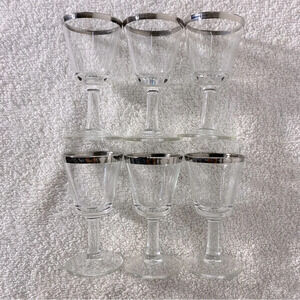 Vintage Silver Rim Footed French Crystal Shot Glasses 7 Cordial Glasses Aperitif