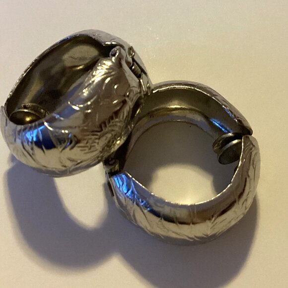 Vintage Silver Round Engraved Pattern Clip-on Earrings Retro Y2K