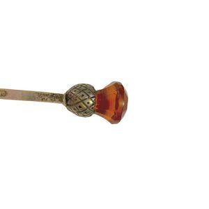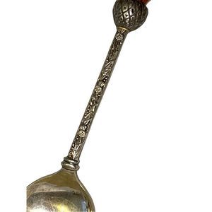 Intricately detailed small silver stirring spoon or teaspoon with amber.