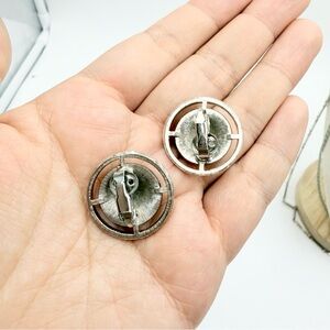 This elegant vintage jewelry set features silver-tone button-shaped clip-on earrings paired with a stunning multi-layered necklace. The classic design adds a touch of sophistication, making it perfect for both special occasions and everyday wear. A timeless addition to any vintage jewelry collection.