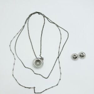 Vintage Silver Tone Button Shaped Clip On Earrings Multi Layered Necklace Sets