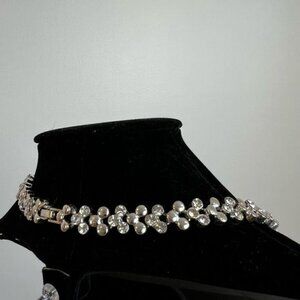Vintage Silver Tone Crystal Statement Necklace Choker Jewelry Ornate Shiny