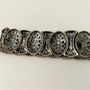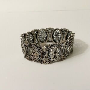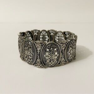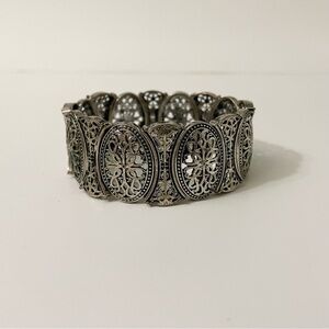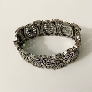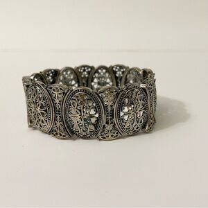 Vintage Silver Tone Filigree Stretch Bracelet