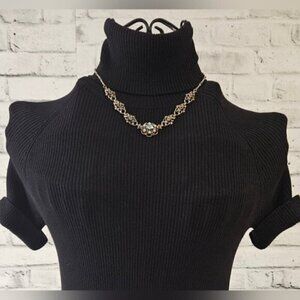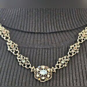 Vintage Silver Tone Necklace with a combination of clear baguette rhinestones