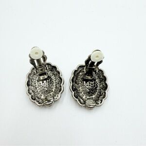 These vintage clip-on earrings feature a classic Navajo-inspired design with rich black onyx stones set in a silver-tone finish. A timeless and elegant piece, perfect for adding a touch of Southwestern charm to any outfit.