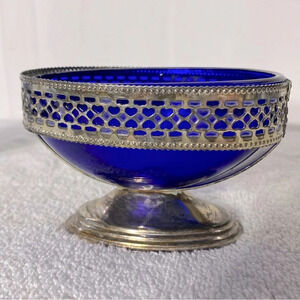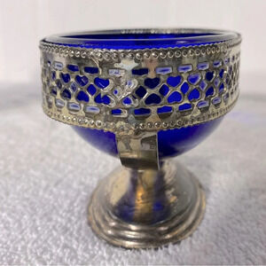 Vintage Silver Tone Pedestal Cobalt Blue Glass Royal Sapphire Cream & Sugar Set
