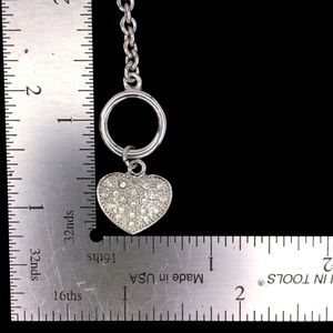 Vintage Silver Tone Rhinestone Encrusted Heart Pendant Toggle Clasp Necklace
