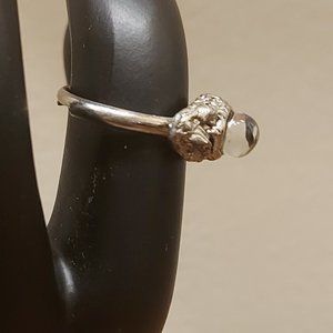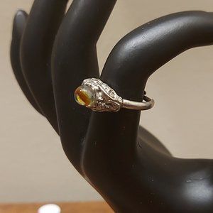Ring is adjustable, with silver toned band and setting. Features a high set orb which changes color depend on the angle it is being view at.