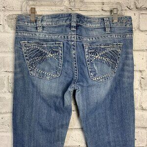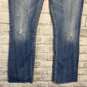 Experience the blend of classic Y2K style and modern comfort with these Silver Jeans Tuesday Bootcut jeans. Tailored for a regular fit, these jeans feature a flattering low rise and a 5-pocket design to keep your essentials close. The light wash denim pairs effortlessly with your favourite tops, while the subtle distressing adds an edgy touch to your everyday look. With a size 30 waist and 32-inch inseam, these jeans are crafted from a blend of cotton and spandex, ensuring both durability and stretch for all-day wear. The embroidered wing pocket and logo accents give a unique twist to the traditional denim aesthetic, making them a perfect pick for anyone who loves a mix of festival, retro, southwestern and bohemian vibes.