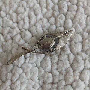 Vintage Silver and Amethyst Stone Fish Leaf Shaped Brooch 1 1/2 Inch Long