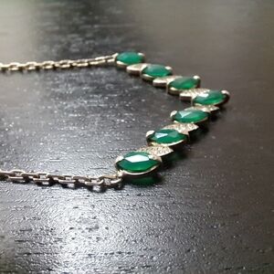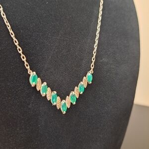 Vintage Silver and emerald marquis necklace