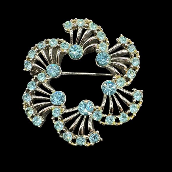 Vintage Silver tone Brooch Light Blue Glass Rhinestones