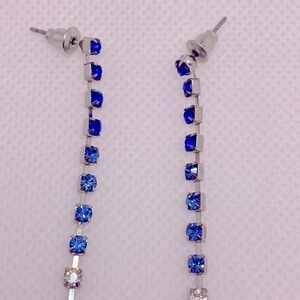Beautiful cascading blue waterfall earrings. Dark Blue, Light blue and white rhinestones all intact and very bright.