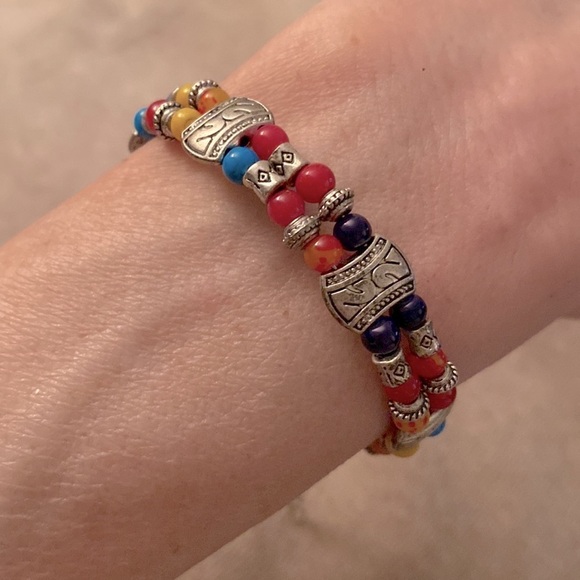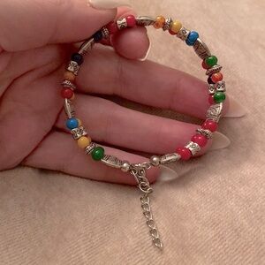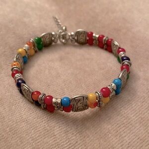 ✅Vintage Silver-tone Rainbow Cameo Concho Red Blue Yellow Beaded Bracelet