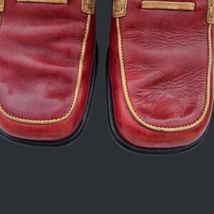 Vintage Simard Red Slip On Loafers Mules Size 38 US 7.5 Leather Square Toe Italy
