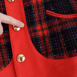 Vintage Simon Chang Black & Red Pattern 88% Wool Button Down Blazer 12