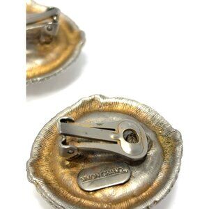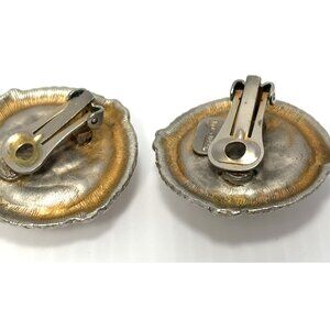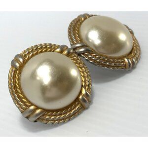 Elegant vintage Simon Chang clip-on earrings featuring a gold tone finish with faux pearl accents. Timeless and versatile accessory for both casual and formal wear. May show minor signs of age-appropriate wear.