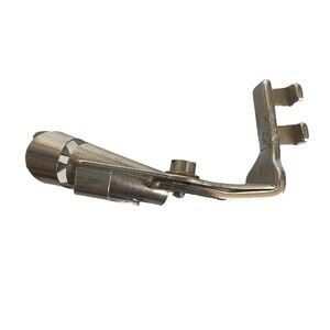 Fit the Binder to the machine in place of the standard foot and check the needle passes through the centre of the needle hole. Fold the binding in the centre and cut to a point. Insert the pointed end into the binder scroll until it comes out at the lower end. Place the edge of the material to be bound between the scroll of the binder and pass it and the binding under the presser foot, then lower the presser bar and start to sew. Folded binding should be inserted in the outside slot of the binder. The screw in the centre of the foot can be used to adjust the Binder for stitching to be at the desired distance from the edge of the binding, move the scroll to the right for narrower adjustment and to the left for a wider adjustment.