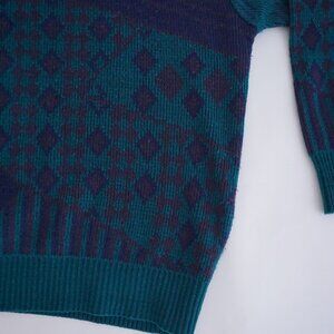 Vintage Sir William Teal Navy Textured Knit Retro Eclectic Grandpa Sweater XL