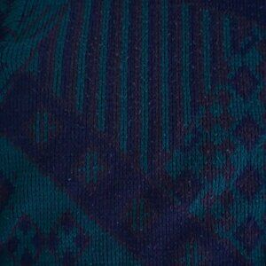 This Sir William textured knit channels that rich Retro energy with a dose of Eclectic Grandpa charm—bold without being loud, and full of that moody, cool-weather character collectors love. The deep navy base blends beautifully with teal geometric detailing, creating a sweater that feels straight out of a vintage closet but still totally wearable today. It gives off Cabincore warmth and a laid-back, artistic vibe, perfect for slow weekends, crisp fall days, or layering through winter.