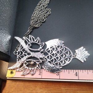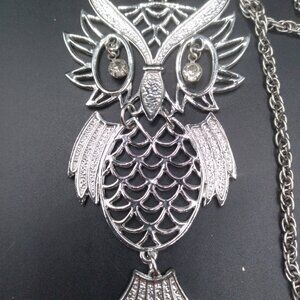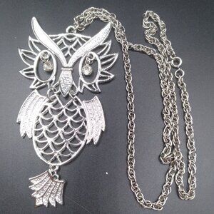 Vintage Siver Tone Owl Pendant with Rhinestone eyes & Necklace