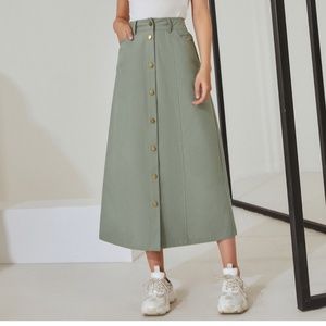Vintage Skirt Green sauge Maxi Button down Utility Pockets Size 12