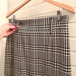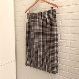 Vintage Skirt Houndstooth Black Cream Ivory Ecru Pencil Academia Size 8 Petite